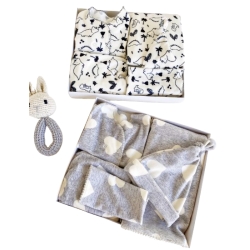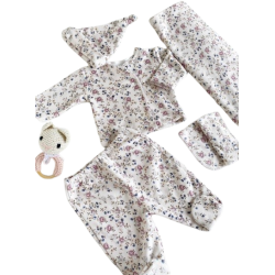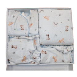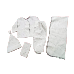 Ajuar de plush con manta, batita, ranita, gorro y babita. Talle Recién Nacido