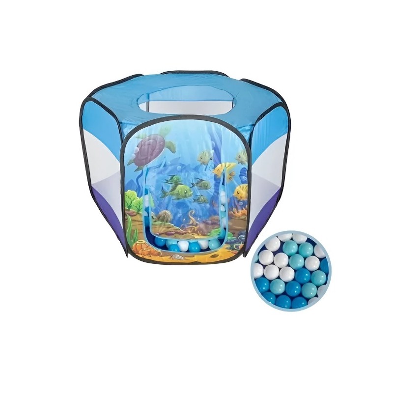 El Pelotero Acuario Infantil es una carpa de fondo marino con 75 pelotas. Esta confeccionado en tela atoxica, es fácil de armar y guardar. Medidas: 100 cm de diámetro y 80 cm de alto.