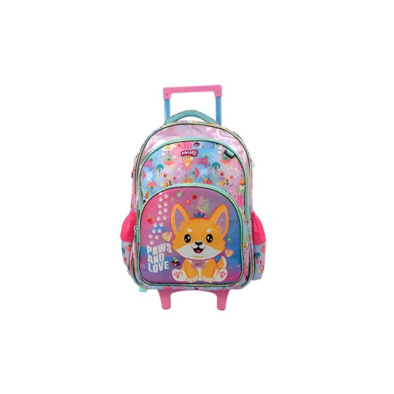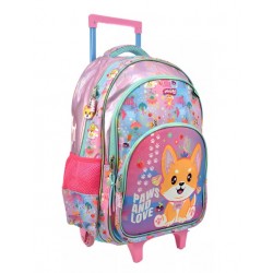 Mochila con carro Dog. Mochila reforzada con carro y 3 ruedas traseras de silicona, con 2 doble compartimento y bolsillo frontal amplio + bolsillos laterales. Medidas: 30 x 45 x20 cm. 27 litros