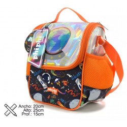 Lunchera con Aislamiento Térmico. Características: -Medidas aproximadas: 20 x 25 x 15 cm. 1 amplio bolsillo y compartimentos laterales.